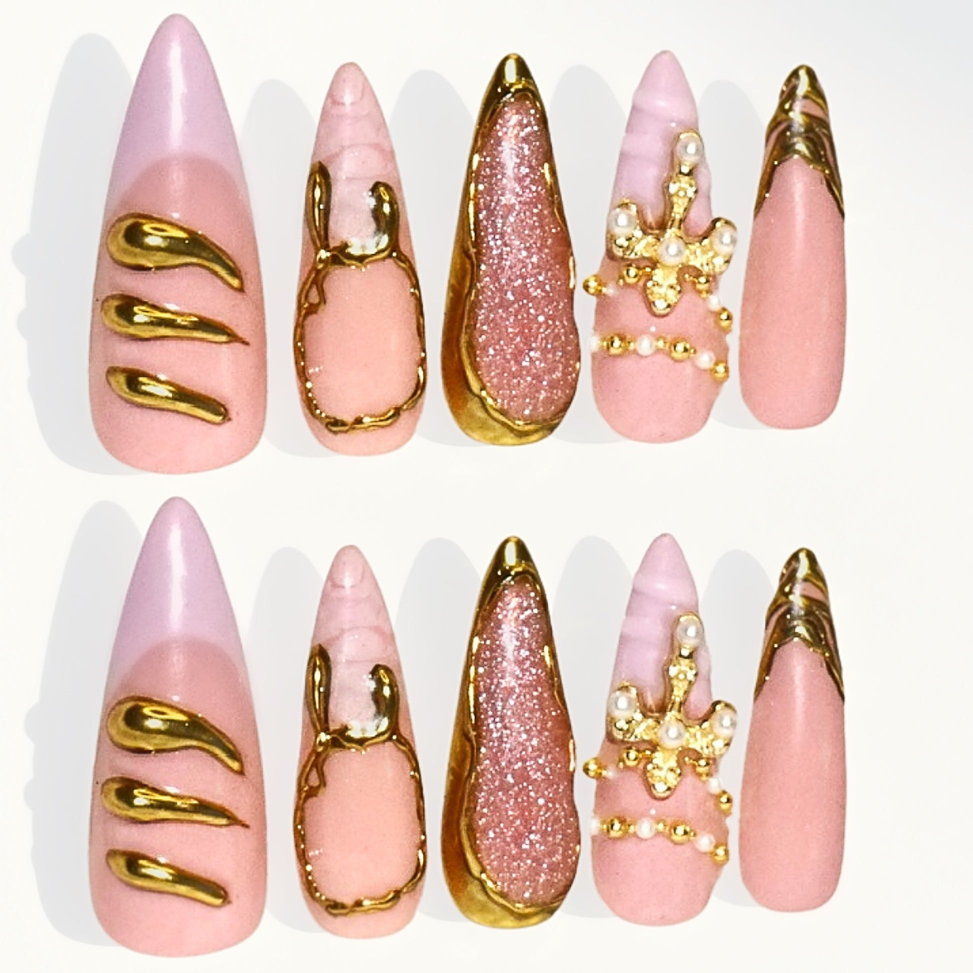 Meet Gilded Cross—a refined ivory set designed for a polished, “quiet luxury” look with one signature statement. Featuring a soft ivory base, gold-outline framing on key nails, delicate gold bead accents, and a crystal cross centerpiece that gives the set its elevated finish.