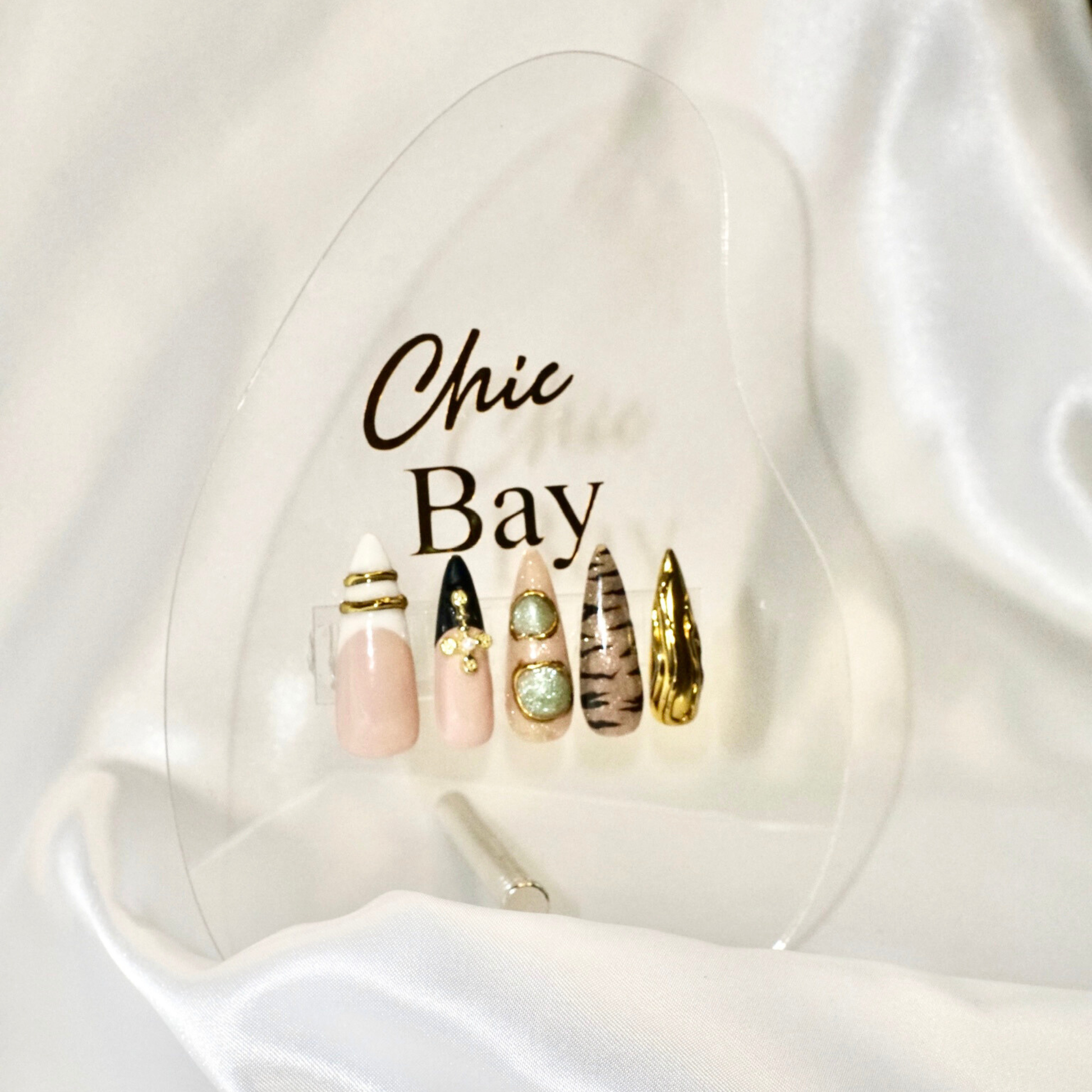 Meet Gilded Cross—a refined ivory set designed for a polished, “quiet luxury” look with one signature statement. Featuring a soft ivory base, gold-outline framing on key nails, delicate gold bead accents, and a crystal cross centerpiece that gives the set its elevated finish.